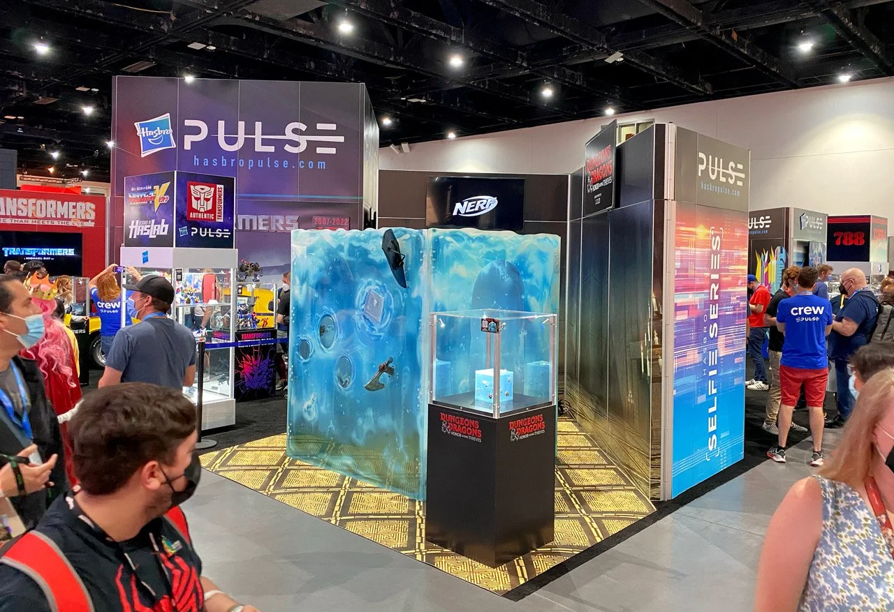 The cube in its final spot at SDCC 2022, alongside the actual Gelatinous Cube toy to be sold