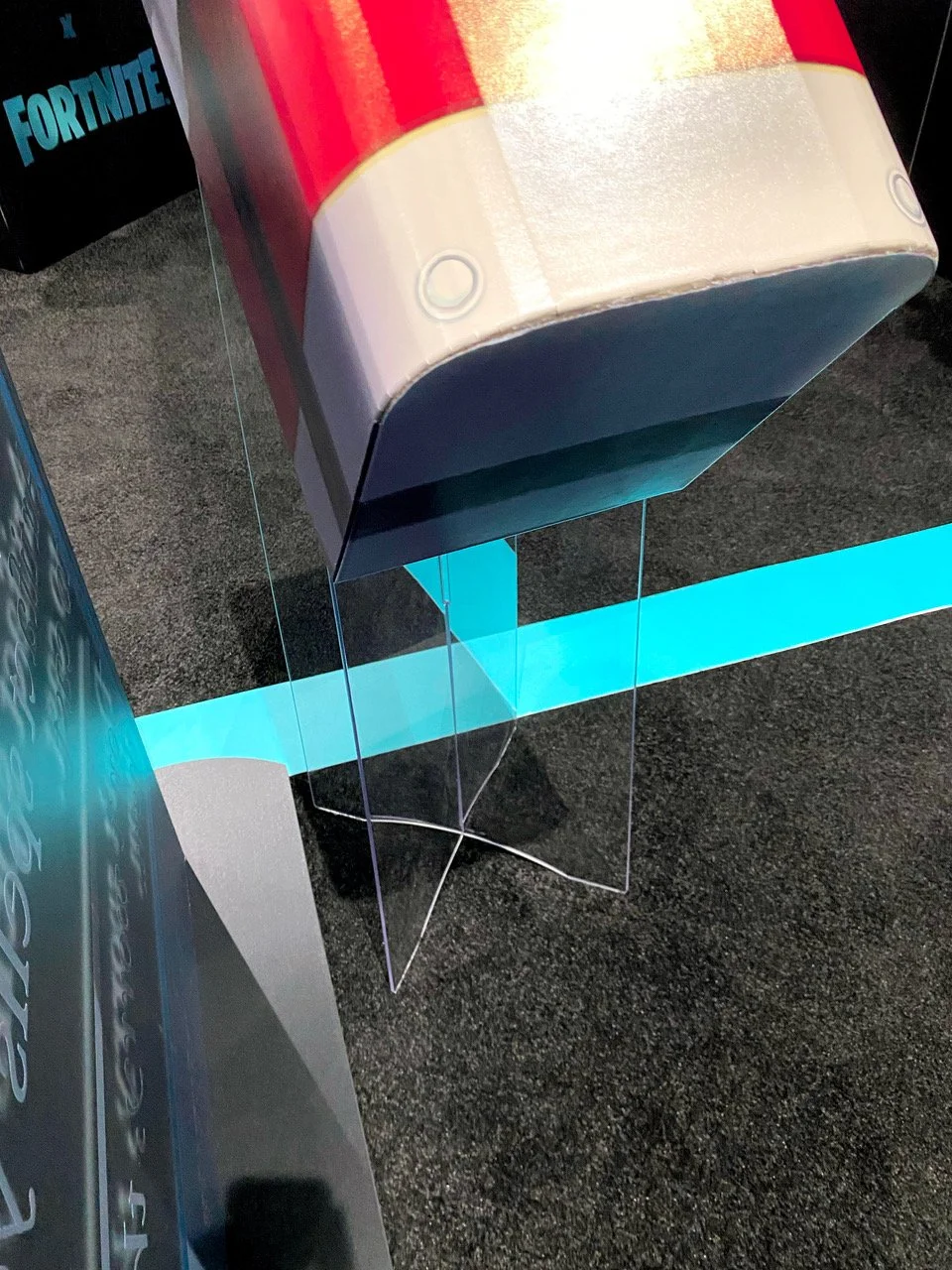 The front panel was held in place with a friction-fit weighted base, the acrylic header panel was held in